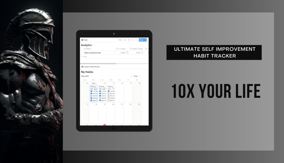 One habit at a time, change your life. Examine the habit overview on a daily/weekly/monthly basis.